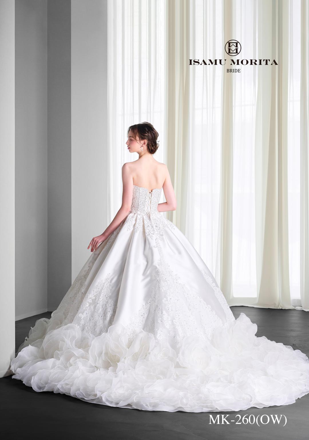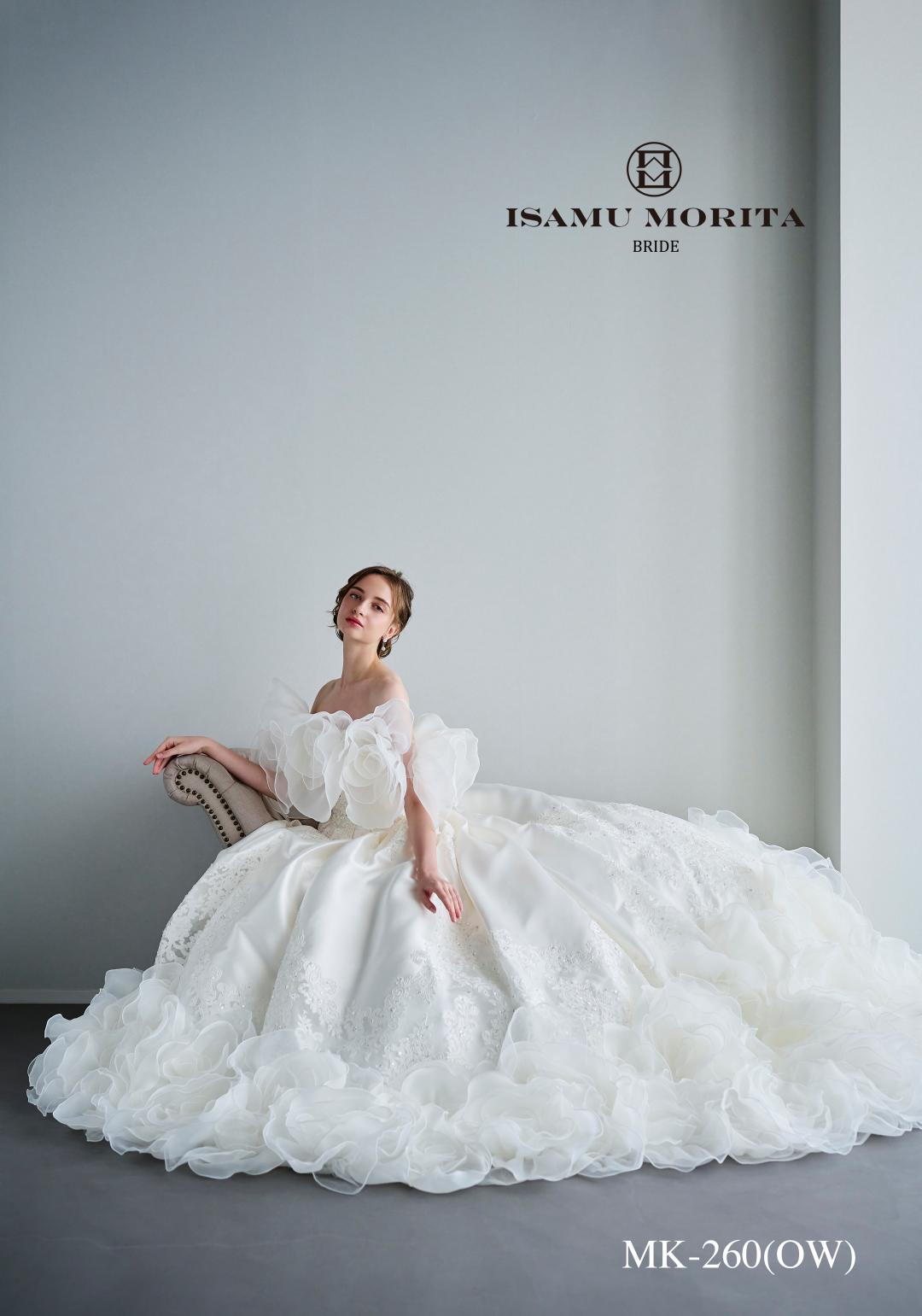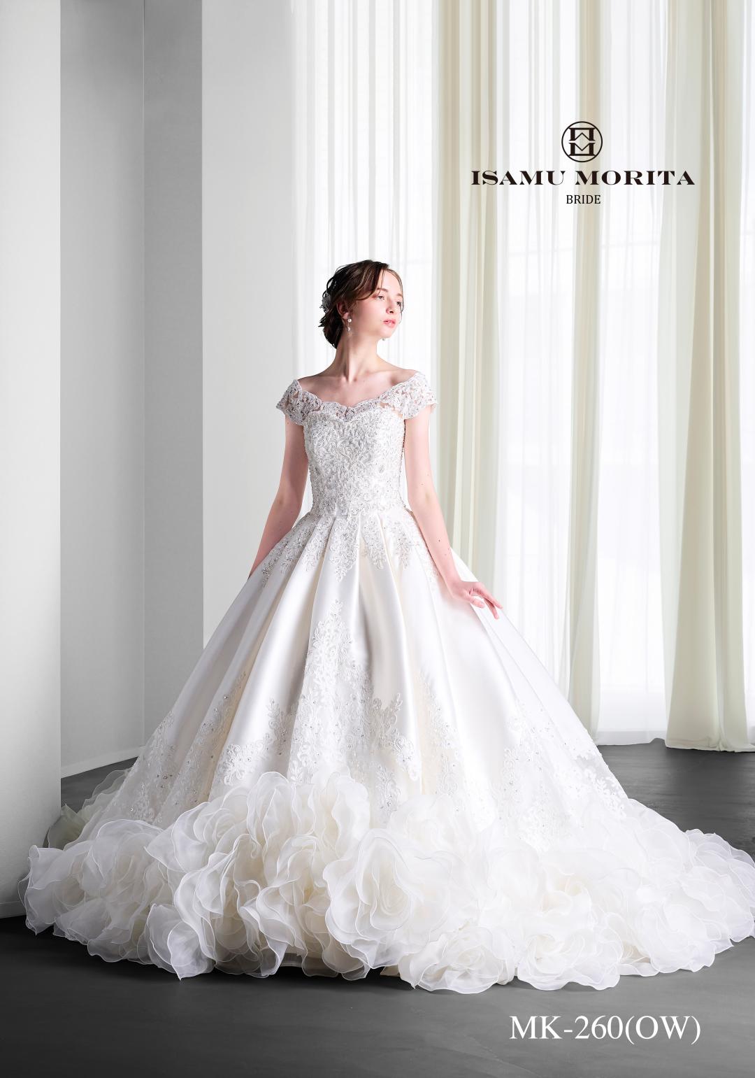 スカートは圧巻のボリューム。ショップNo.1の存在感! フワフワ花びらのオフショルダー、フレンチスリーブとベアトップのアレンジが色々できます。